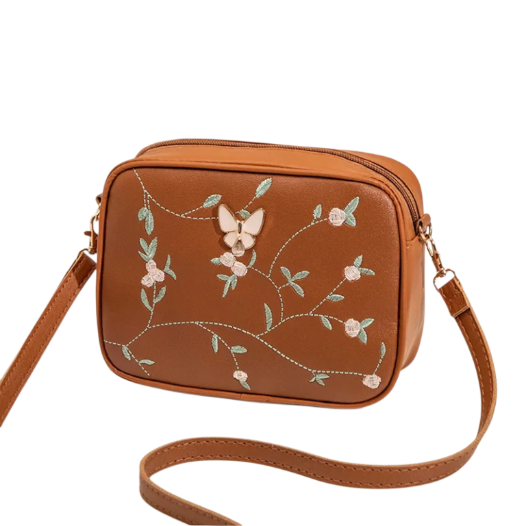 Whether you’re a student, professional, or fashion-forward trendsetter, the Brown Embroidered Butterfly Crossbody Bag adds a refined charm to your everyday look.