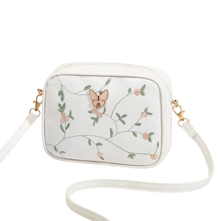 Whether you’re a student, professional, or fashion-forward trendsetter, the White Embroidered Butterfly Crossbody Bag adds a refined charm to your everyday look.